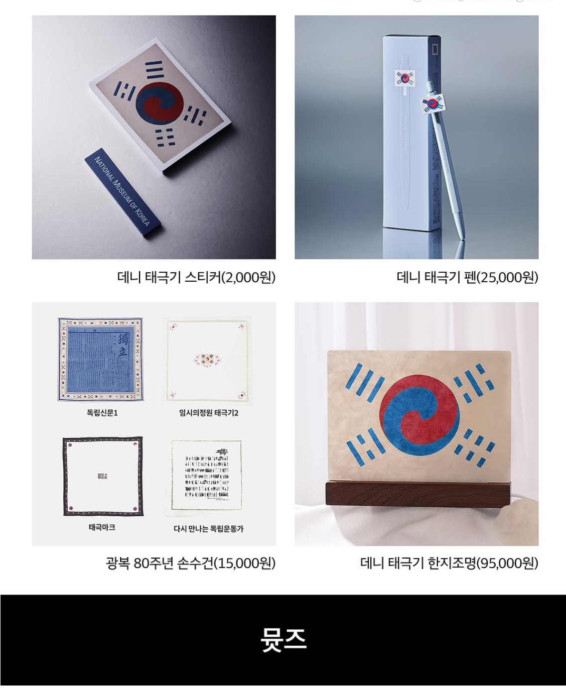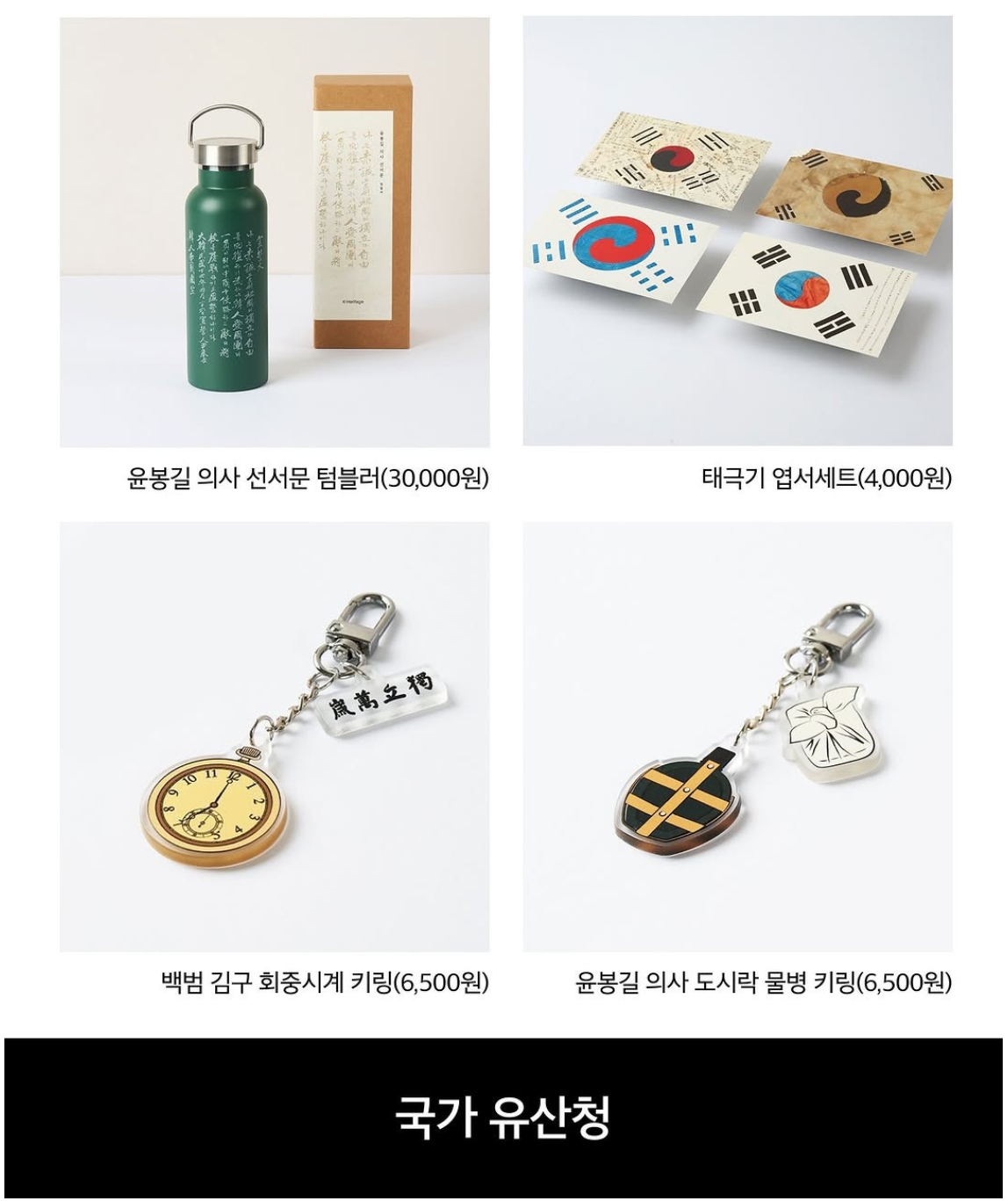 - 기념우표, 태극기 관련 굿즈(스티커·자수·키링·에코백·텀블러)