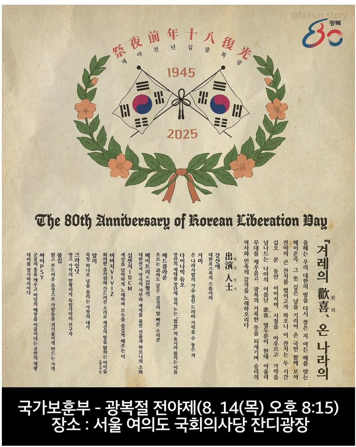 - 음악회·렌즈형 미디어 아트(광복의 역사·의미를 주제로 한 공연)