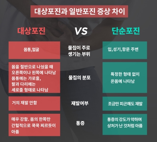 (대상포진은 직접 전염되지 않으나 수두는 전염 가능)