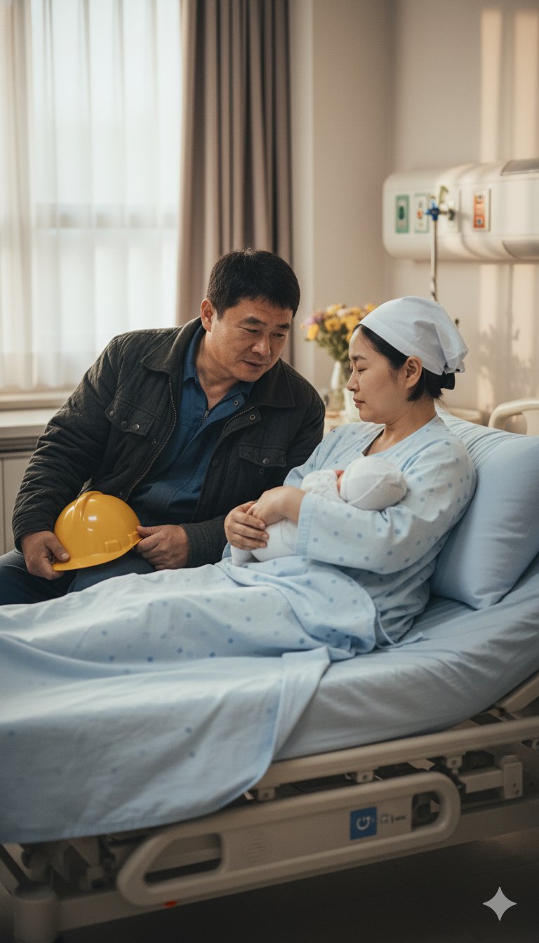 조금 뒤, 분만실 문이 열리고 아내가 나왔다.