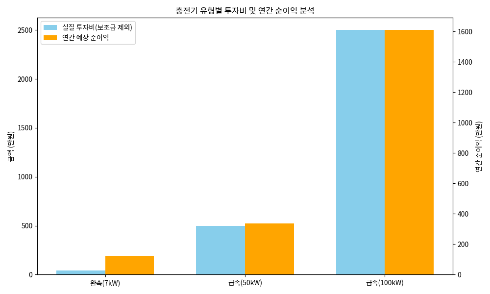 충전기 유형별 투자비 및 연간 순이익 분석