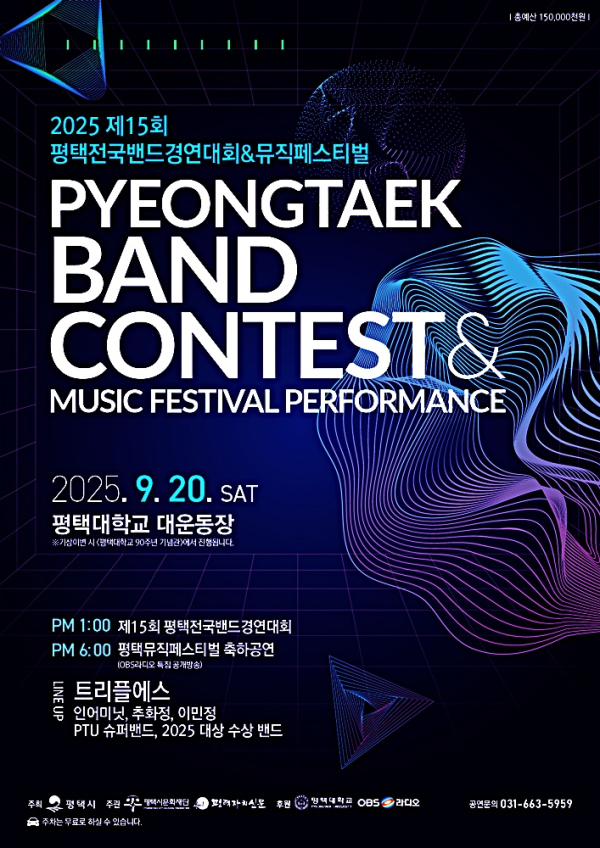 - 자세한 문의는 평택전국밴드경연대회 & 뮤직페스티벌 조직위원회(031-663-5959)로 할 수 있습니다.