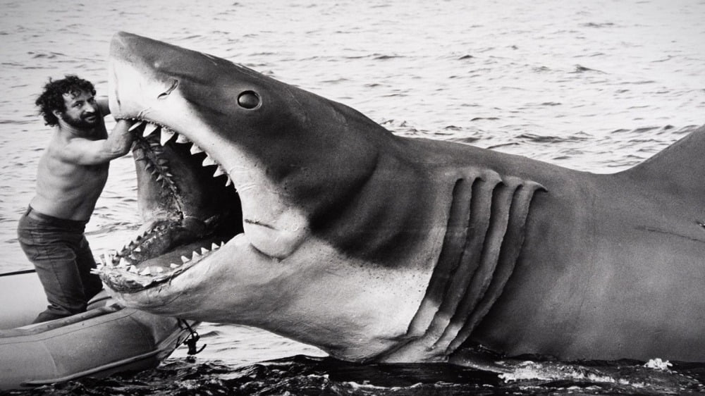 - 줄거리: 백상아리 공격으로 공포에 휩싸인 아미티 섬. 경찰서장 마틴 브로디(로이 샤이더)는 해변 폐쇄를 주장하지만, 시장 래리 본(머레이 해밀턴)이 관광 수입을 이유로 반대. 상어 공격이 계속되자, 브로디는 해양생물학자 맷 후퍼(리처드 드레이퍼스)와 사냥꾼 퀸트(로버트 쇼)와 함께 상어를 사냥. 클라이맥스는 배 ‘Orca’에서 벌어지는 긴장감 넘치는 사투.