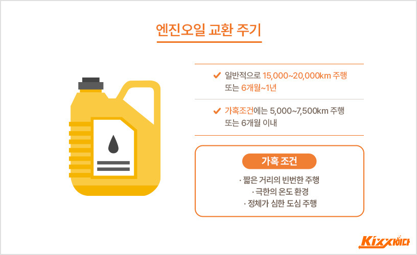 일반적으로 국산차의 경우 5,000~10,000km 또는 6개월~1년에 한 번 교환하는 것이 권장됩니다. 하지만 주행 환경에 따라 차이가 발생합니다. 도심 주행이 많고 정체가 잦다면 엔진에 부담이 크기 때문에 더 짧은 주기가 필요합니다. 반대로 장거리 고속도로 주행 위주라면 상대적으로 교환 주기를 늘려도 무방합니다.