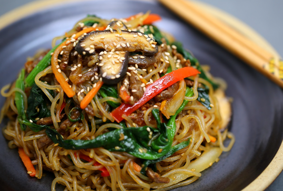 잡채에 들어가는 고기(돼지고기 또는 쇠고기)와 표고버섯 등을 에어프라이어에 살짝 구워내면 팬에 볶는 것보다 훨씬 담백하고 수분 조절이 쉽습니다.