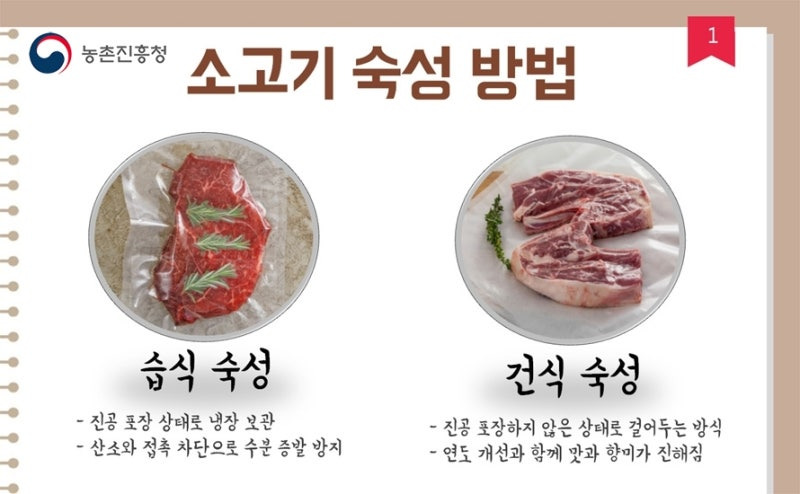 - 숙성 방법: 건식 숙성(포장하지 않고 숙성)과 습식 숙성(진공 포장하여 숙성)이 있습니다. 가정에서는 습식 숙성이 간편합니다.