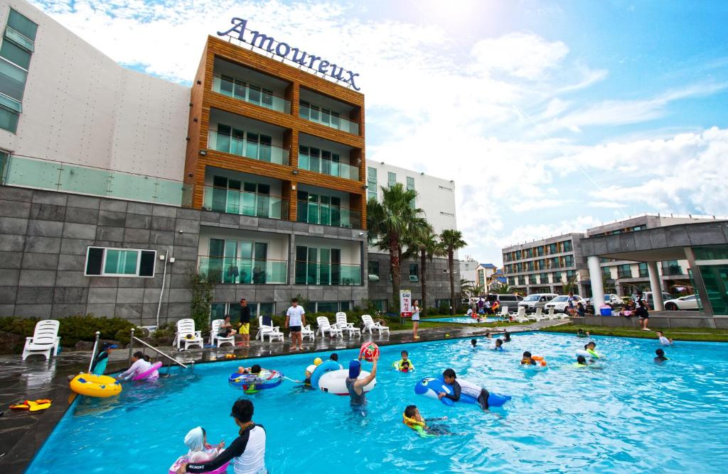- 제주공항과 가까워 접근성이 좋고, 이국적인 분위기의 넓은 객실을 자랑합니다. 아이들을 위한 놀이시설도 잘 갖추고 있습니다.