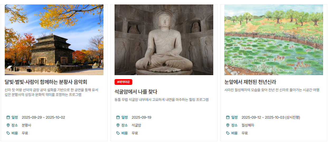 신라 천년고도의 문화유산을 활용한 역사문화축제입니다. 야간 조명 투어, 전통 공예 체험, 신라 복식 체험, 고분 투어 등으로 살아있는 역사 교육을 제공합니다.