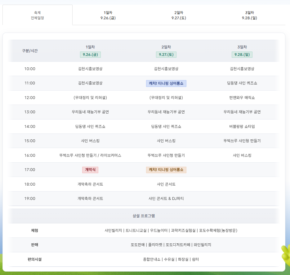 김천은 샤인머스켓의 본고장으로 알려져 있으며, 이번 축제를 통해 지역 특산물인 포도와 다양한 체험·문화 콘텐츠를 함께 즐길 수 있습니다. 가족 단위 방문객부터 젊은 세대까지 모두가 만족할 수 있는 종합적인 프로그램으로 구성되어 있습니다.