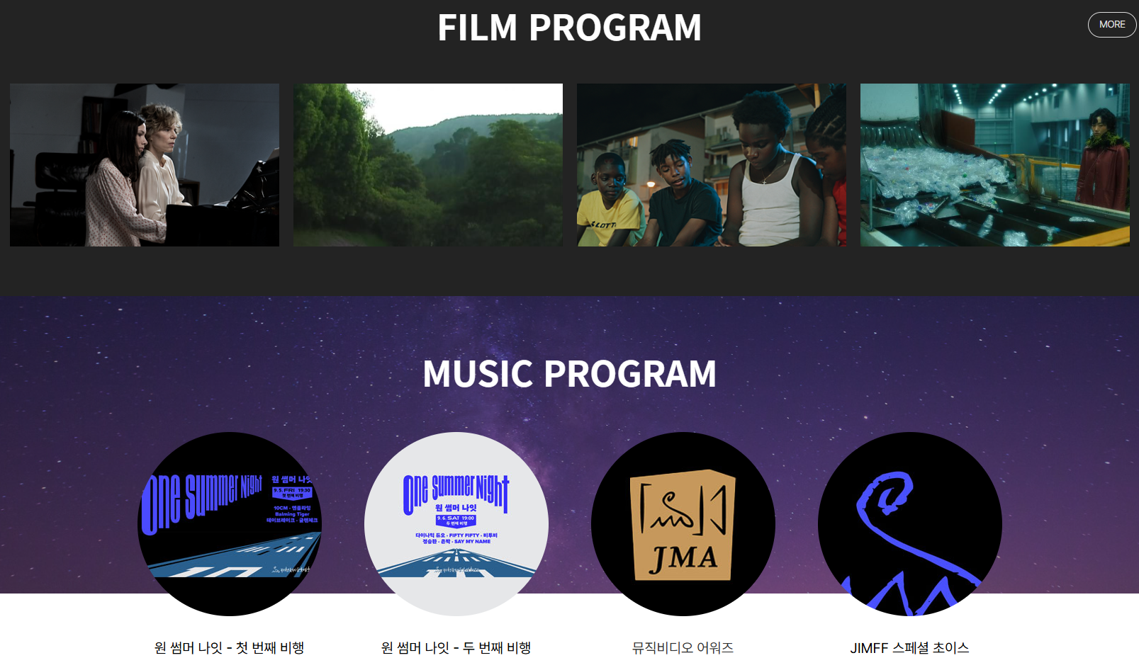 - JIMFF 뮤직필름마켓: 영화음악가와 영화 제작자를 연결하는 국내 유일의 영화음악 전문 마켓입니다.
