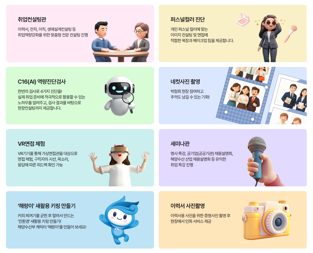 - 채용관: 해양수산 관련 기업들과의 현장 면접 및 채용 상담