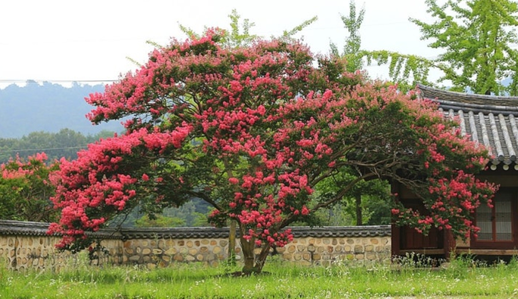 배롱나무는 '목백일홍(木百日紅)'이라고도 불리며, 이름처럼 100일 동안 붉게 피어나는 꽃으로 유명합니다. 7월부터 피기 시작해 8월에 가장 절정을 이루며 9월까지도 꽃을 볼 수 있습니다. 껍질이 없는 매끈한 나무줄기와 붉은색, 흰색, 보라색 등 다양한 색상의 주름진 꽃잎이 매력적입니다. 특히 햇볕이 잘 드는 곳에서 더욱 풍성하게 피어나 여름 풍경을 아름답게 장식합니다.