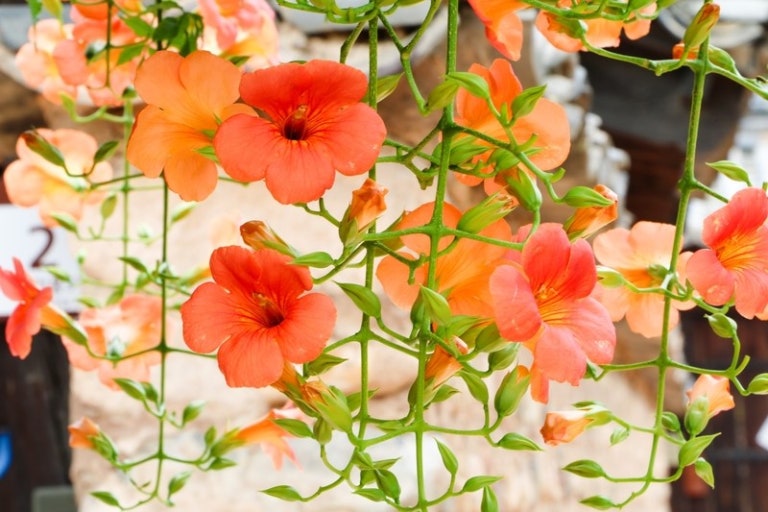 '여름의 꽃' 하면 빼놓을 수 없는 능소화는 7월 말부터 8월까지 화려한 주황색 꽃을 피웁니다. 덩굴식물로 담장이나 벽을 타고 올라가 피어나며, 주렁주렁 매달린 나팔 모양의 꽃은 이국적이면서도 정열적인 분위기를 연출합니다. 강렬한 색감 덕분에 멀리서도 눈에 띄며 여름날의 뜨거운 햇살과 잘 어울립니다.