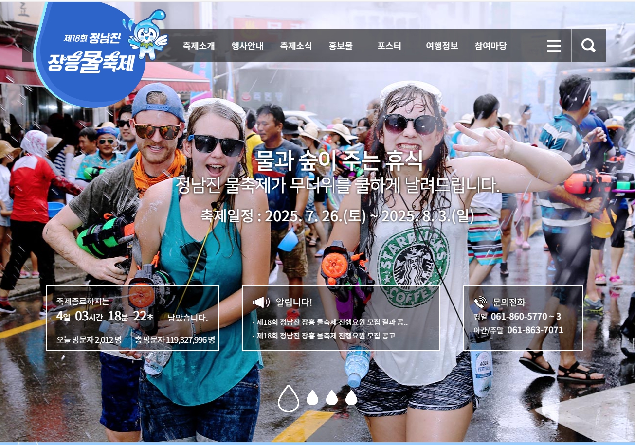- 정남진 장흥 물축제 (장흥군): 7월 26일 (토) ~ 8월 3일 (일)