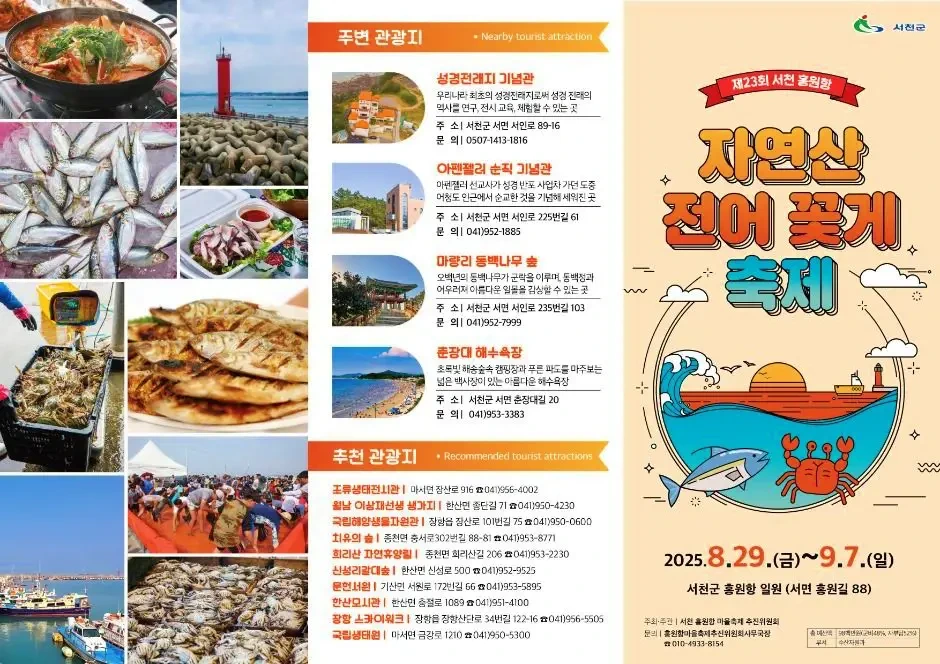 서천 홍원항에서는 매년 가을, 제철을 맞은 전어와 꽃게를 주제로 다채로운 축제를 엽니다. 특히 '가을 전어에 집 나간 며느리 돌아온다'는 속담처럼 신선한 전어는 가을의 대표적인 먹거리로 손꼽힙니다. 축제 기간 동안에는 전어 회, 구이, 찜 등 다양한 요리를 맛볼 수 있으며, 바다의 신선한 공기를 느끼며 즐길 수 있는 다양한 체험 프로그램도 마련되어 있습니다.