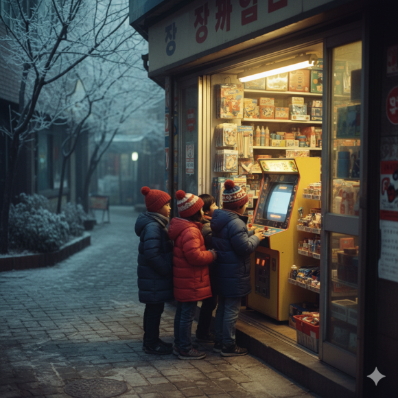 아이들의 손끝은 빠르게 움직였고,게임기 불빛이 얼굴에 반짝였다.