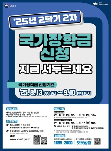 2025학년도 2학기 2차 국가장학금 통합 신청 안내